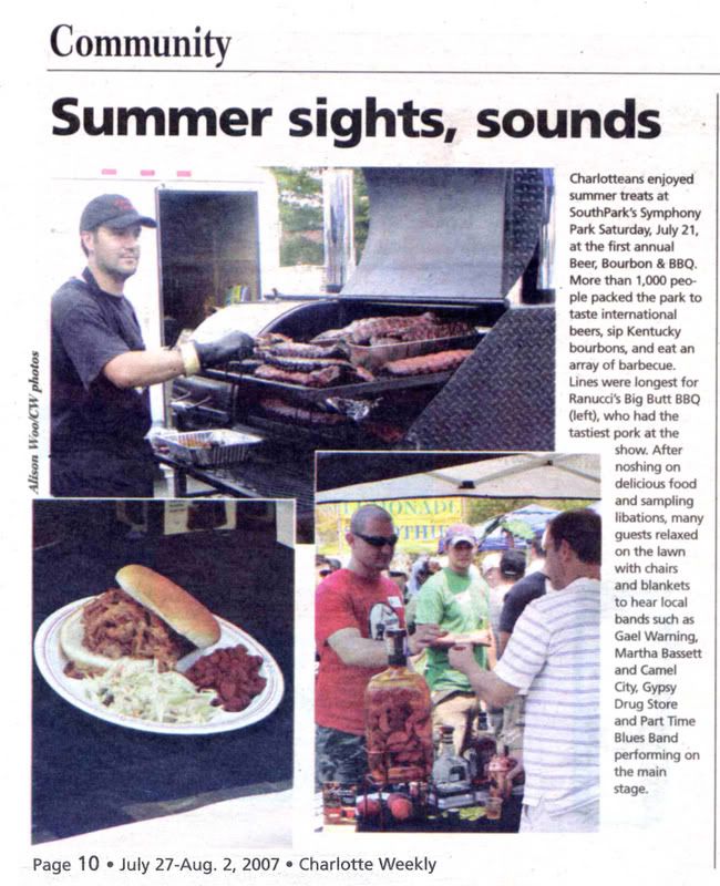 Well, we did our first vending event last weekend in Charlotte. It was the Beer Bourbon and BBQ tasting. Got to meet Cactus from the ring, thanks for stopping on by and saying hey. Event went extremely well, they said 3-4 thousand should show up but ending up being more than 6 thousand at the end of the day. Every vendor in the place ran out, beer bourbon and all food vendors by 6pm and the event ran until 8. There were only 6 bbq vendors and the weather turned out great. It was a crap shoot like most have mentioned here but if you luck out with good weather there is money to be made. We went down the day before and cooked just like we do in competitions, we were the only ones who did, all others brought frozen and reheated. Glad we did it that way because we got some more press in the local paper. Here are a few pics we took before the craziness took place. There were only 5 of us working all day but it was well worth it.