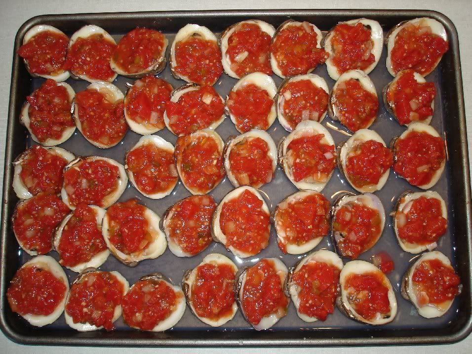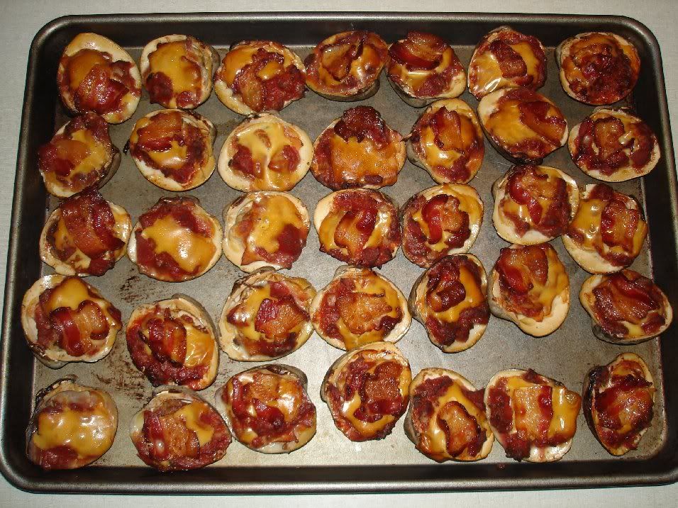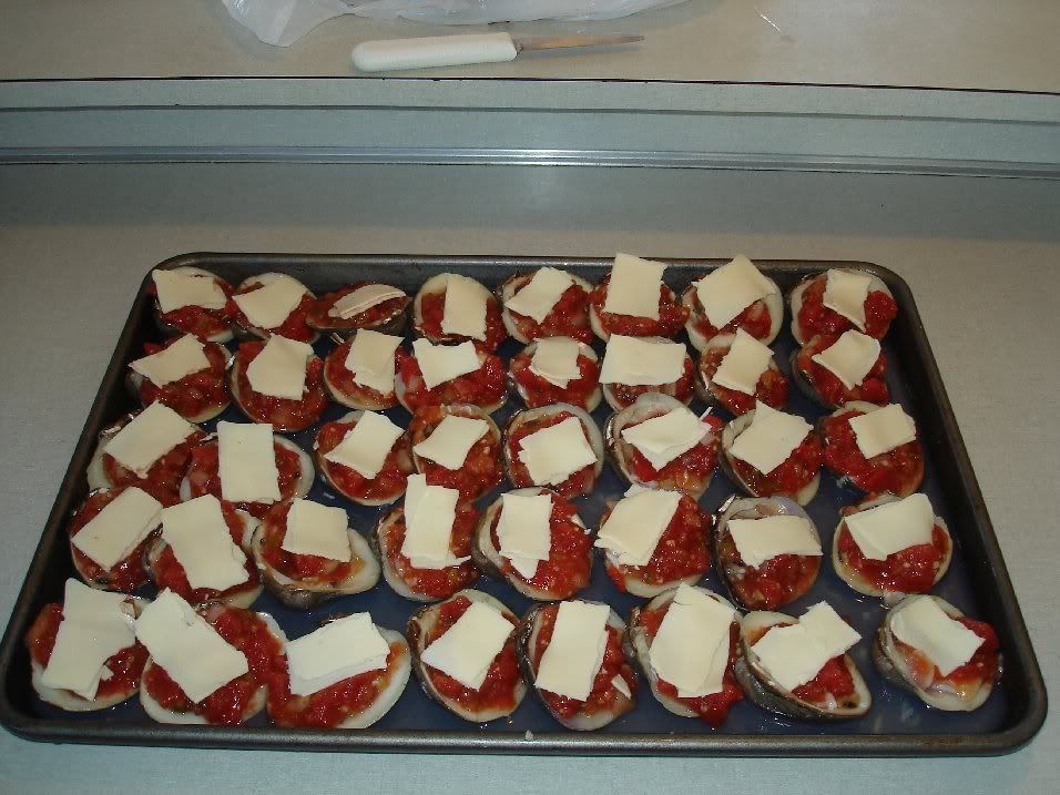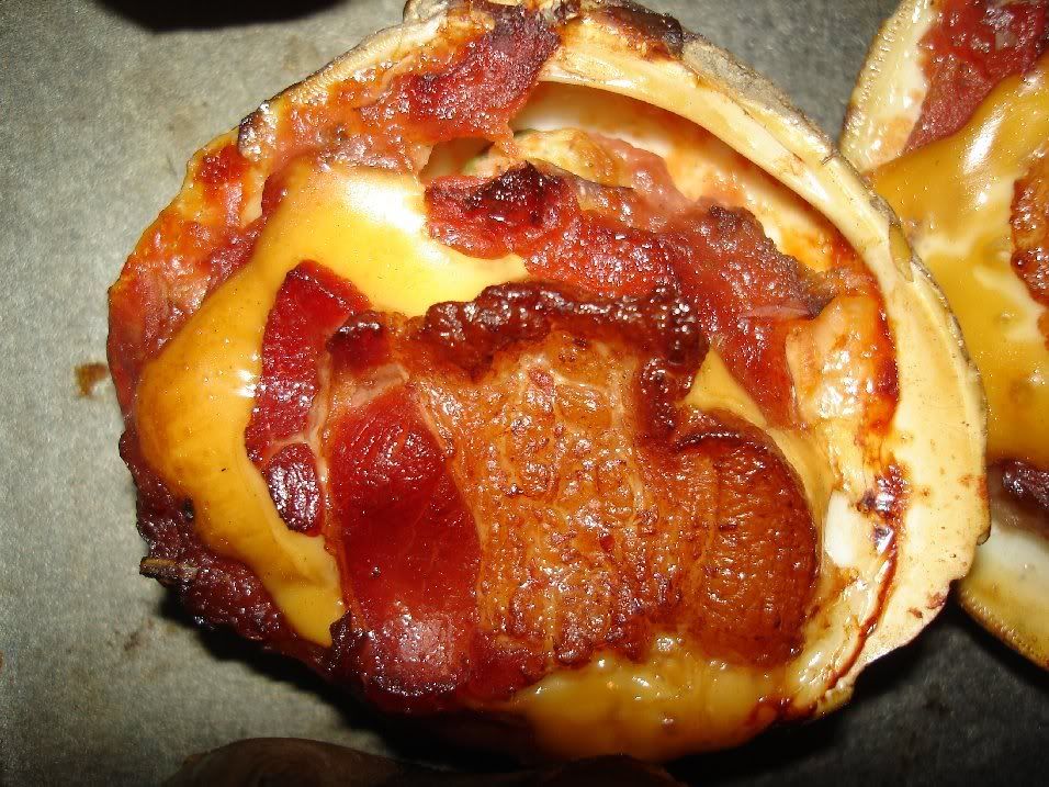 Mmmm...Bacon on a Clam with Cheese and Sauce...I should have brought the leftover ones into work today for lunch. Wow I'm hungry!!!