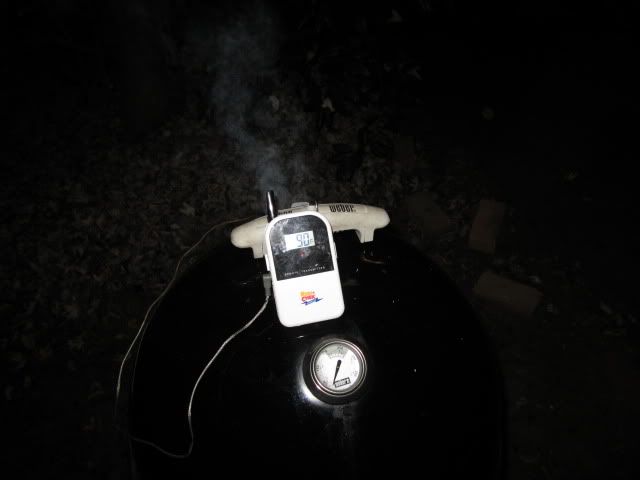 you only need a few pieces of charcoal, the idea is to produce smoke not heat. Try to keep your pit as cold as you can, keep the needle pegged at it's lowest point.