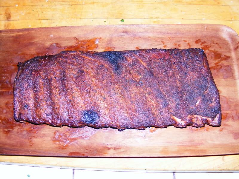 I did not glaze the ribs and I under cooked them because I was going to reheat them for tonights dinner. I used some fine bourbon BBQ sauce I got as a Christmas gift and wrapped them in foil, half an hour in the oven and they turned out very good indeed. Tender and moist, hate to say it but almost better than fresh from the smoker.. Almost.  _________________ Chargriller Akorn