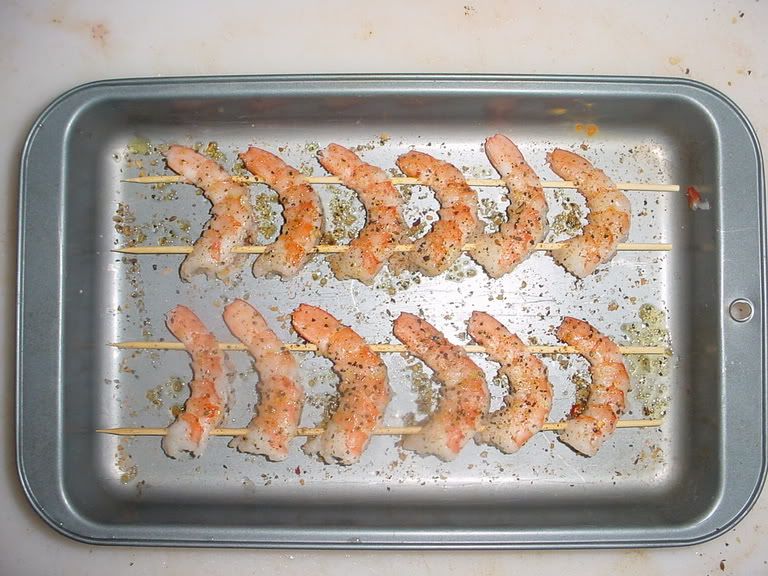 And for some snackin' here are shrimps with some creole, lemon zest, chopped garlic, and black pepper corns.