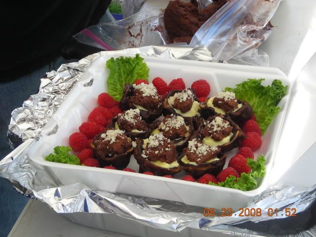 We did an anything butt or Chefs choice. I chose to do a Bacon Cup diped in chocolate, Filled with creme Brulee, And topped with a Raspberry mouse.