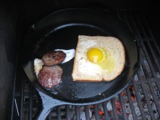 Did that a few years back in an old Skillet. I was on the mountain in Alaska hunting Brown Bear. We did Country Fried Moose Steaks with the eggs. The bread was a Sourdough made fresh 3 days before in Seward Alaska from a Starter that was 67 years old.
