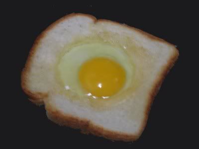 we have also shollowed out an Italian loaf sliced down the middle and cracked the eggs into it. and pan fry till eggs set up. |