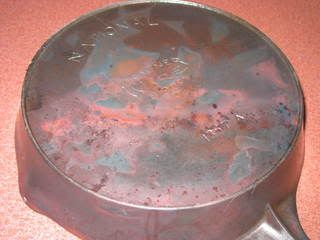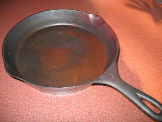 A side note on cleaning my cast iron. I got a 1" putty knife and ground the edge to match the bevel of my cast iron. I use this to scrape the stuck on food. The added bonus of doing this is it eventually wears down the random bumps from the sand casting.