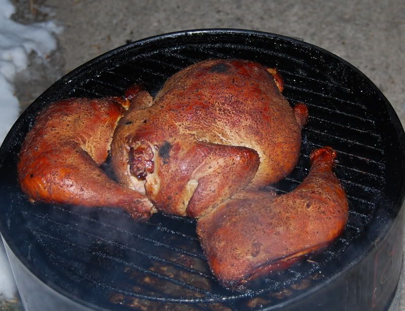 Nothing like smoking a whole chicken with some legs and thighs on a cold Illinois February night