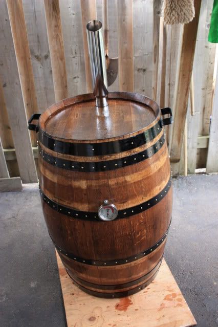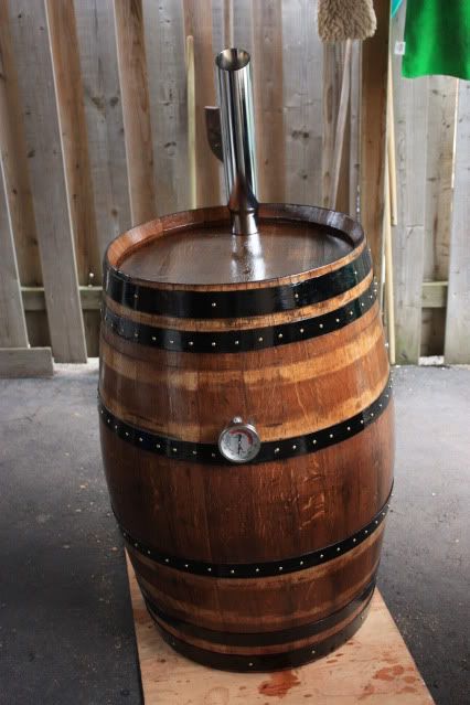 | You beat me to it CB. I think your barrel is going to be a fine cooker. With the staves about 3/4" thick it should be pretty well insulated. If you fill it up with water for a couple of days before you use it I imagine it would steam the food pretty good and help keep it from giving your food that really strong "smoked" flavor your trying to avoid, if you know what I mean. Nice work. |