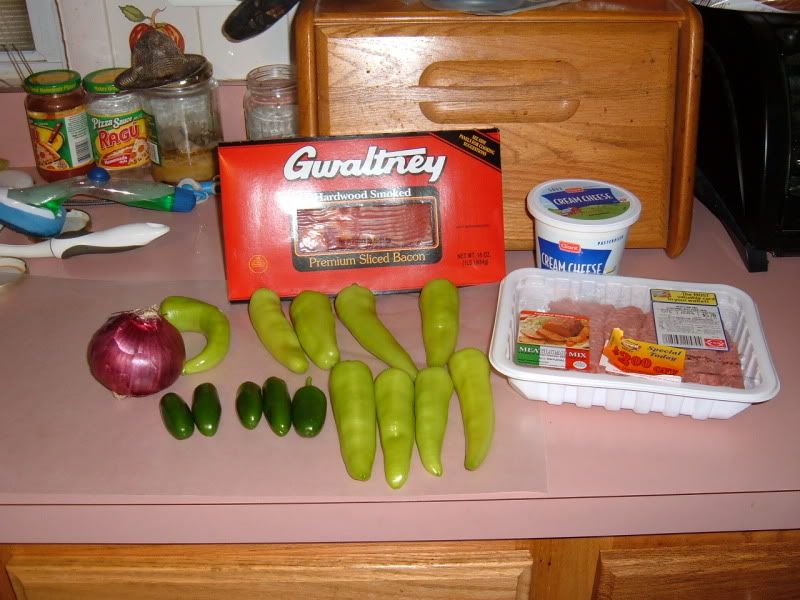 The ABT's that I normally make contain Little smokies or ground beef/ or meat loaf mix with cream cheese and red onions and wrapped in bacon smoked at 225-250° for about 2-2.5 hrs.