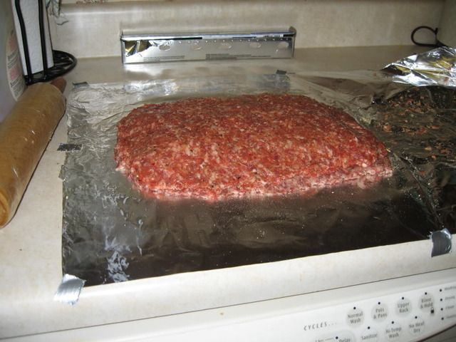 Rolled out JD sausage and rolled Diced JP into sausage