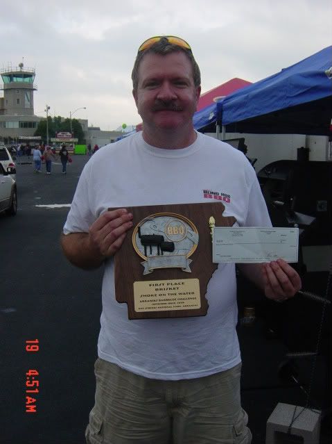 We got started in comp bbq this year and our second contest was my favorite...Even though the weather was bad, we managed. We were satisfied with our chicken, I panicked on my ribs, and we were excited over our brisket. Low and behold we got our first call on ribs that placed fourth. And lessoned learned...Do Not Drink Apple Pie on Friday Night. _________________ Weber Performer 22"