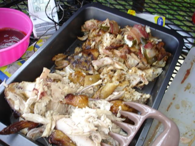 The eats look really good. I would of posted but I joined AFTER I ate the evidence. Ribs and Chicken came out good but the sholder roast took a long time. The family liked it and thats all that matters. Again, Good Pix.  |