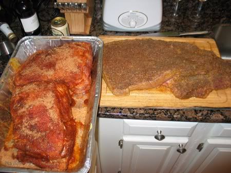 Ok, here they are. Stayed up all night, everything came out great, even the brisket was excellent, what a feast!