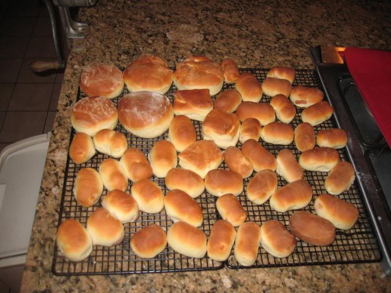 All done. Leftover pieces can be moistened and stacked to make a few dinner rolls, and the remaining dough can be pressed flat and cut into rounds to make rolls.