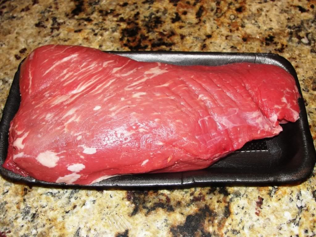 it was 4.4 pounds, and i cooked it for about three hours.... temps range from about 226-240...i didn't touch it the first hour...when the first hour hit, i turned it over, spritzed both sides and closed the smoker back up...then i spritzed it evey half hour, and i pulled it at 147 internal degrees...i wrapped it in foil for about 45 minutes and sliced it as the crew was getting hungry...i don't like my beef bloody, so it was a bit rare for me...i would have let it rest n the foil for about an hour and a half and i think it would have been spot on (for me anyway)...of course the two end slices were more well done, the way i like it, so i grabbed one end and Nikki grabbed the other end...the neighbors liked it more rare, and thought is was perfect and delicious...