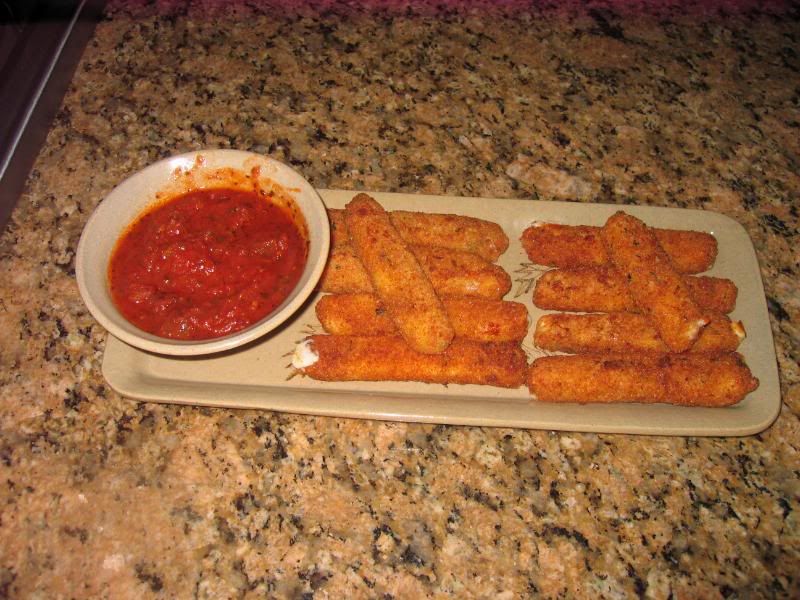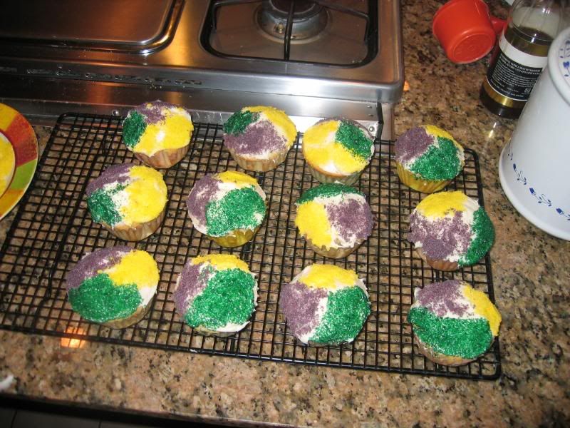 Made mozzarella sticks on Saturday while my wife made Mardi Gras King cupcakes (recipe from Kingarthurflour.com) and regular yellow cupcakes with chocolate frosting. here's a portion of them while making them.