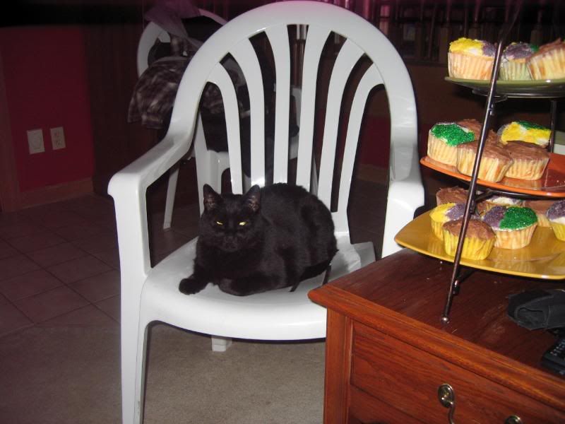 He was scratching the back of the sofa where Birthday Boy was sitting, as he usually sleeps there at night. He jumped up there after everyone left and we put the room back together.