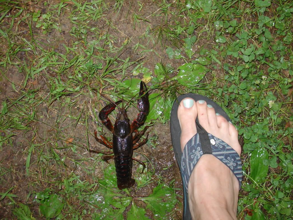I found out from talking with K.A.M. on his Crawfish Cook post that we paid a little more for our mudbugs than they do in Texas, but it was worth it. We paid 2.00/lb plus a delivery fee, and I was impressed with these critters that came all the way from LA to AR and then to me from my vendor near Harrisburg, AR. They were in great shape and seemed no worse for the wear from traveling such a distance....some of the biggest I've ever had. Look at the size of this one!
