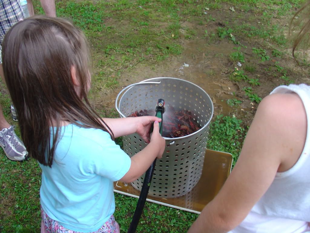 and here is my Cajun friend Stiles demonstrating our purging method. We used the strainers dunked into a heavy plastic dedicated tub. Easy to dunk up and down to dislodge dirt and debris,