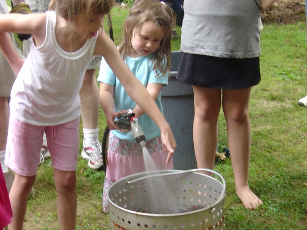 and then they get a shower...my girls loved to help with this part. That's Lindsey in action: