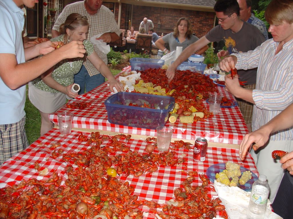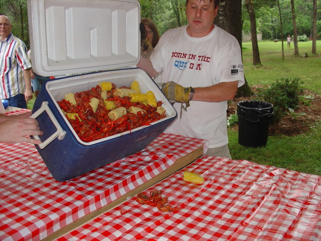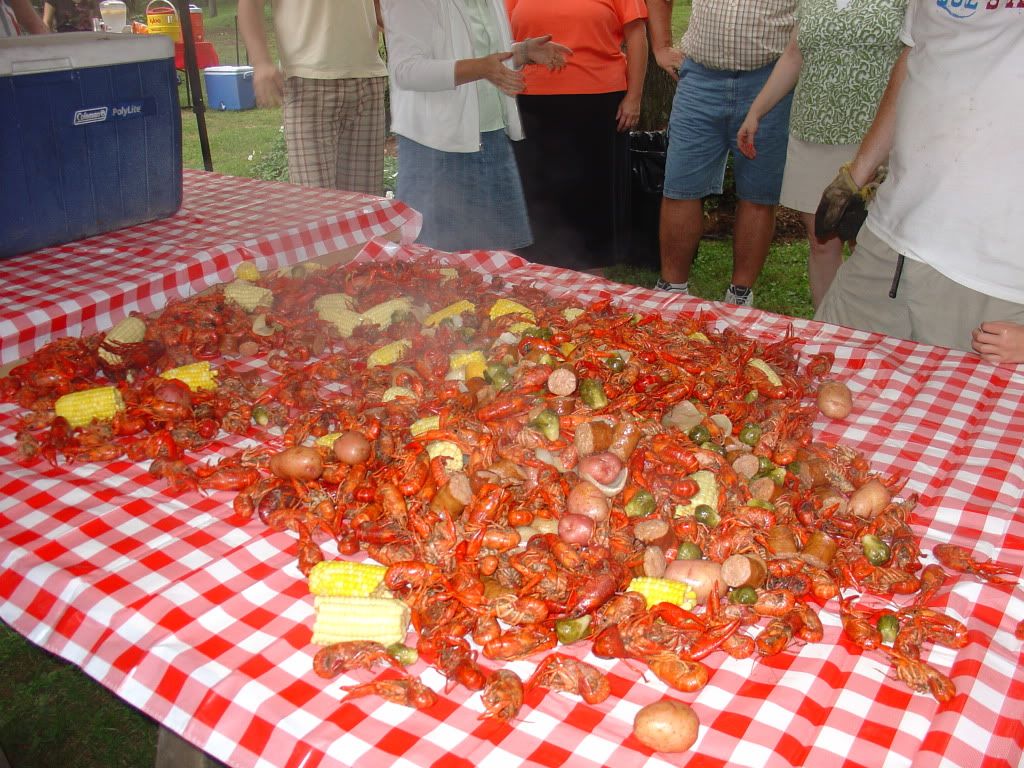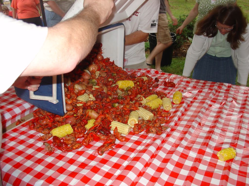 DDawg: You can use either method and at this boil folks did both. The experienced crawfish eaters will ease right up to the table and just wade in. Alot of the ladies liked to get a plateful and go sit down. But it takes ALOT of crawdads to make a meal so it pays to stay close to the food!