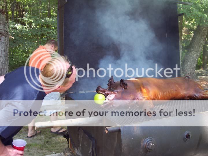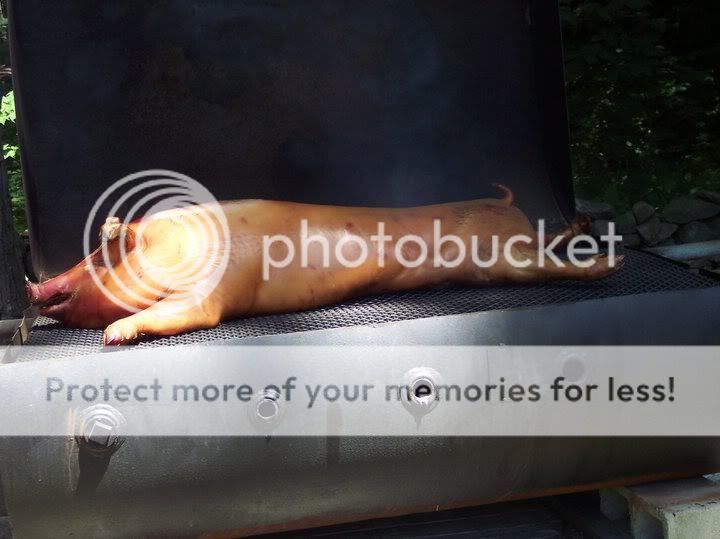 I have 1 of these I have done 100+ pounds of roasts on, never a whole pig on it. IF you manage to get it in there, be sure to have first added some kind of metal to deflect the flames / heat where they first enter smoke chamber [ look up mods for brinkmann ] if you were to cut it into quarters and use both upper and lower racks - you should have no problem, whole pig will be pretty tight! Maybe try using only the lower rack, face towards fire- racer position with but almost touching back of smoker...NEVER close the chimney as it is for exhaust not temp control. Keep the fire to the left side of the firebox, either small splits or bagged chunks of hardwoods with charcoal - dont soak...apply dry rub to pig, put foil over face as it will be close to flames - cant imagine any room to wrap critter in foil...get up early - easier to hold at temp than to rush it to done....be prepared to quarter and either rotate chunks or finish on direct flame[?] Get a good thermometer and check all parts before serving!!Be sure to have a large metal bucket under the drain hole, that piggys gonna let out a load of fat! Far more than that beer can will hold. Good thing this is for family. ....they will be more understanding... wish I were there to see this! Could be fun, maybe....... _________________ Money Maker