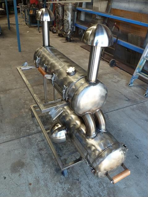 So today I just made a cover for the hole in the lid and a vent for the firebox(used the same pattern we had for the chimneys), cleaned up the welds a bit and there you go!