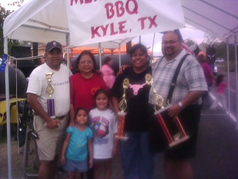 Still no first place or Grand Championship, but had a good time and did well. We took 3rd place in brisket. For the side categories I won 2nd place fajitas and my wife took 4th place beans. Last year I got "skunked" at this event, what an improvement. I was nervous because the contest grew from 24 teams to 45. My new Alien Bolo was the talk in my area. Until I started to use it the other teams thought it was to fight them off if they came into my site! Thanks Alien, I love it!!!!!!!