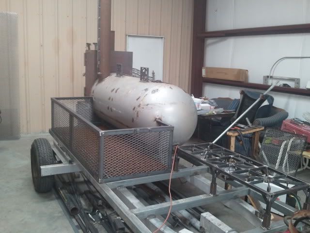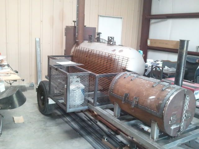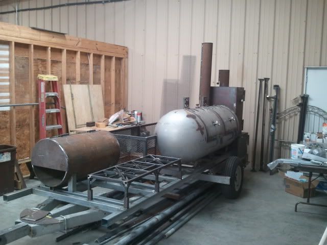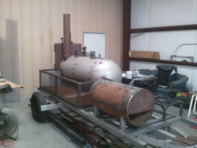 We were able to get the majority of the grill fished this past weekend. There are still slide rails, and food grates to be made, but I think it looks good sitting on the trailer. My uncle was working on the exhaust yesterday, and will probably have that complete by the next time I see it.