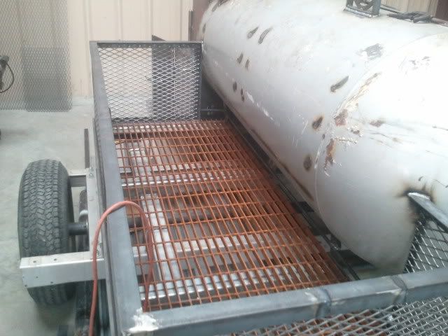 We were able to get the grill almost finished up and mounted on the trailer. Also began work on the propane tank holder. We decided to put it on the side of the trailer instead of the tongue.