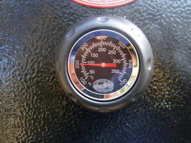 I got things going with some Royal Oak lump a half dozen small chunks of wood that I mixed into the charcoal. I light things up with my torch on on side and got temps up to the 200ish range in about 20 minutes to half an hour with bottom and top vent half way open. As I approached 200 I bit by bit closed off both vents till I have the bottom vent closed and the top vent at 1/2..