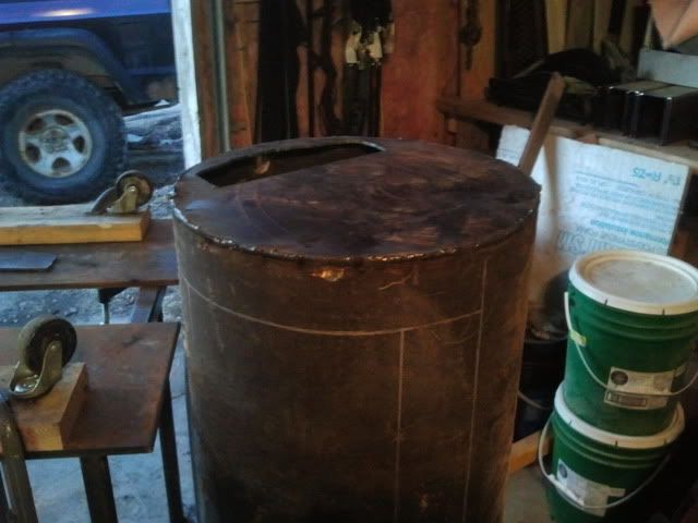puckertime!!! stood er up on me lil welding table outside.....marked cutline had at er.