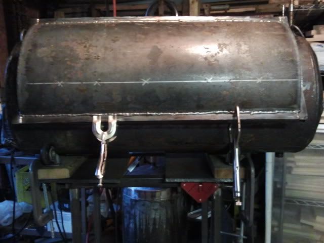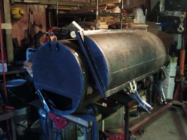 oh yeah, i also designed my next cooker inbetween workin on his an mine. the cooker body is an oil tank we sectioned and welded together initially he wanted it fer his firebox, but thinkin on it it was still waay too big.