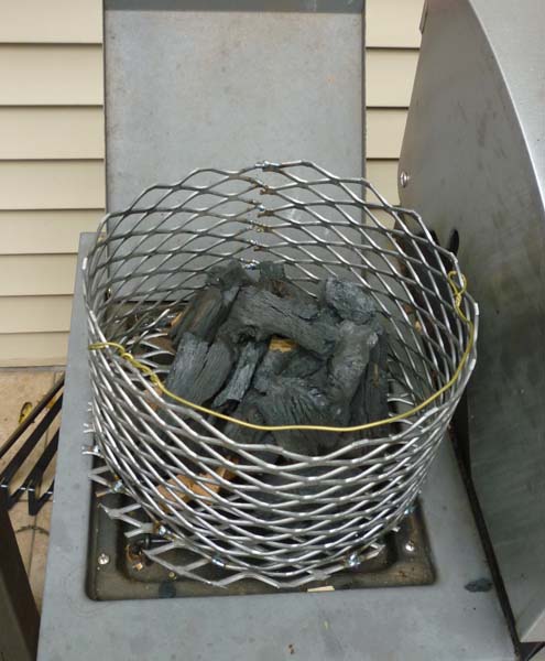 My basket. It was $30 to have a local metal shop cut it and weld it together for me. Not bad in this area. Read in another thread the idea of just setting it on the side burner on a gas grill. Brilliant and easy! With the kindling things were going in 30 seconds or less;