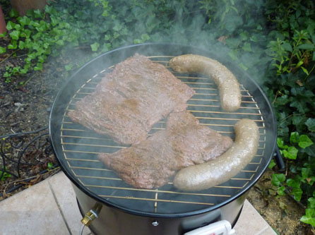 Done, I threw the sausage an steak on the grill for a few minutes to crisp things up a bit;