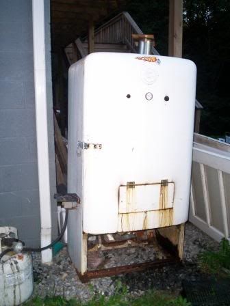 Also, I had trouble with grease building up in the bottom of the fridge, so I drilled a 3/8" hole in the bottom. Flaired out one end of a 8" long piece of copper tubing and slid it in the hole. Makes a nice grease drain. (and the dog loves it, like a meat popsicle).