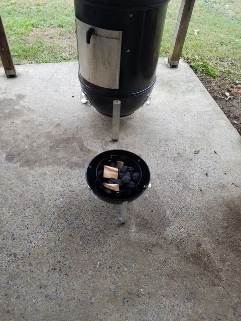 Just put the 14.5 WSM together. Gonna fire it up wide open , foil lined empty water pan. Got some cheap marinated chuck steaks for it l8r.
