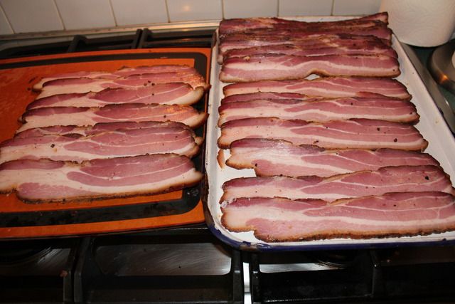 Cooking a couple slices right now to crumble on a salad a baked potato tonight. This boy is having a 24oz Porterhouse with trimmings as a reward for putting up with this nasty election season.